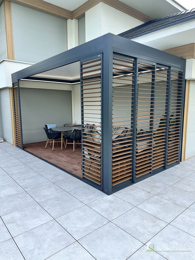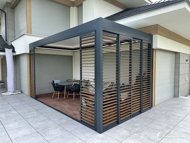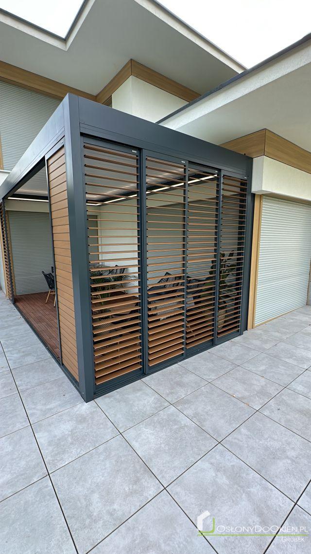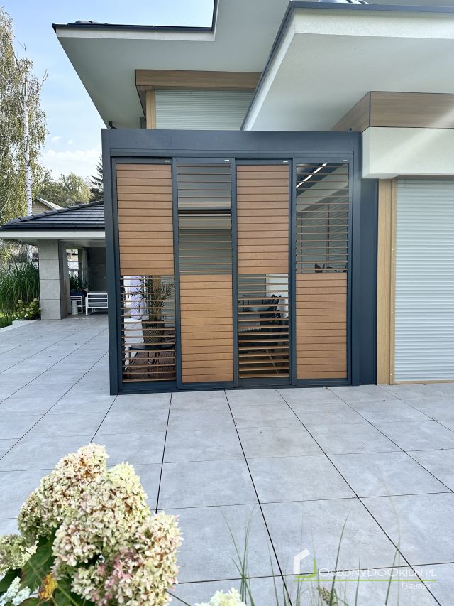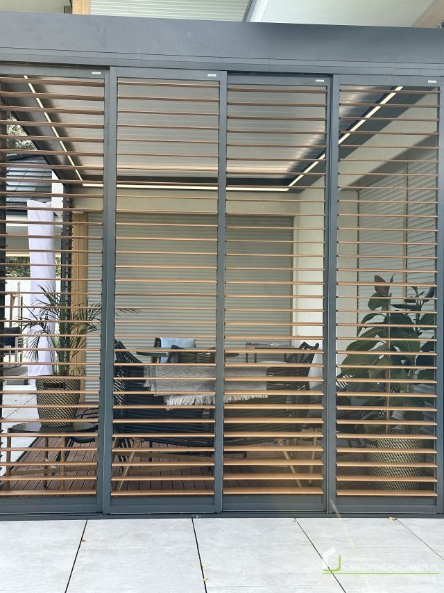 Shutters aluminiowy to elegancka i nowoczesna alternatywa dla tradycyjnych osłon okiennych. Wykonany z wysokiej jakości aluminium, charakteryzuje się dużą odpornością na warunki atmosferyczne, dzięki czemu idealnie nadaje się do użytku na zewnątrz. Przesuwny system shuttersów pozwala na łatwe otwieranie i zamykanie osłon, umożliwiając precyzyjne kontrolowanie ilości światła i prywatności w pomieszczeniu. Doskonale sprawdzają się w nowoczesnych budynkach, zapewniając zarówno ochronę przed słońcem, jak i elegancki wygląd.